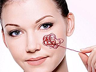 - Удаляем крупные сосуды на крыльях носа, подбородке, щеках
